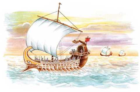 Once all the seas were so infested with pirates that no one sailed without the greatest danger of death or enslavement. Many sailors and merchants, having their goods stolen and their ships sunk, were either killed or taken into slavery by pirates. Only those who could pay a large amount of money were freed from servitude. Gaius Julius Caesar himself, when he was a young man sailing from Italy to Rhodes, was seized by pirates and was not freed before paying a great price. Not only sailors, but even the inhabitants of the coasts and islands were in fear. Some islands were abandoned by the inhabitants, many coastal towns were captured by pirates. For such was their force and daring, that even scorning the power of the Romans, they attacked the ports of Italy. Therefore because of the strength and number of pirates, not even the Tuscan sea was safe, too little grain was being carried from Sicily and Africa to Rome. Thus a great scarcity of grain occurred, from this matter the price of grain always rose. Finally, when grain and bread was already so costly that many poor were dying from scarcity of necessary food, the Roman people demanded with one voice that the entire Roman fleet be sent against those very daring enemies. Therefore Gnaeus Pompey, an outstanding leader, was put in charge of the fleet. He first drove the pirates from the Tuscan sea, that is the sea nearest to Rome, and from Sicily, the island nearest to Italy, then he pursued them into Africa. Finally, with some ships sent into Spain, he set out himself with his fleet into Asia overcoming all the pirates he found there in short time. With this excellent victory all the people, from Spain to Egypt and Judea, were freed from this common danger. At the same time that the welcome message came to Rome from that very welcome victory, the price of grain began to drop; for with the pirates conquered, sailors sailed without fear through the sea that are common of all peoples. In Rome therefore from the greatest scarcity immediately a large supply of grain was made and bread was as cheap as it was before - which was very pleasing to the Roman people. All the Roman people gave the highest praise to Pompey the victor. From that time it was rare that a pirate ship appeared in the Mediterranean Sea, for the Roman fleet, that ran through all the seas, carefully protected merchant ships and coasts. The Mediterranean Sea again is rightly called 'our sea' by the Romans. But nevertheless the Roman fleet cannot protect all sailors who sail everywhere. Still there are some sea pirates, who are so daring that they are certainly not deterred by the arms of the Romans. Our friends sailing in the Tuscan sea think that such daring pirates are following their ship. They are all disturbed. Even if the sailors row with all their strength, nevertheless that ship, aided by a following wind, is approaching more and more. The steersman looking at the cloudy sky wishes that the wind will turn against them. For he believes his sailors to be so strong that no other ship driven with oars alone can follow his ship. |